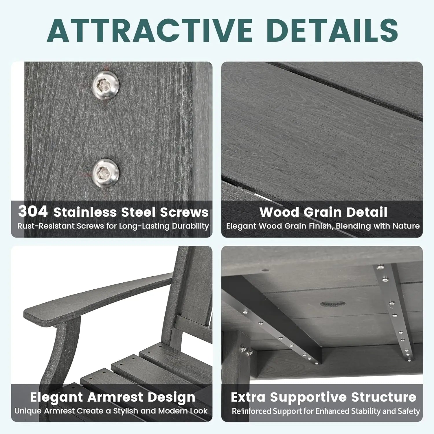 Crafted from premium HDPE material, this dining set is not only durable but also resistant to all weather conditions. Its wood grain finish adds a touch of elegance, making it an eye-catching addition to your outdoor furniture collection. The sophisticated design features stylish armrests, providing enhanced comfort for your dining experience.