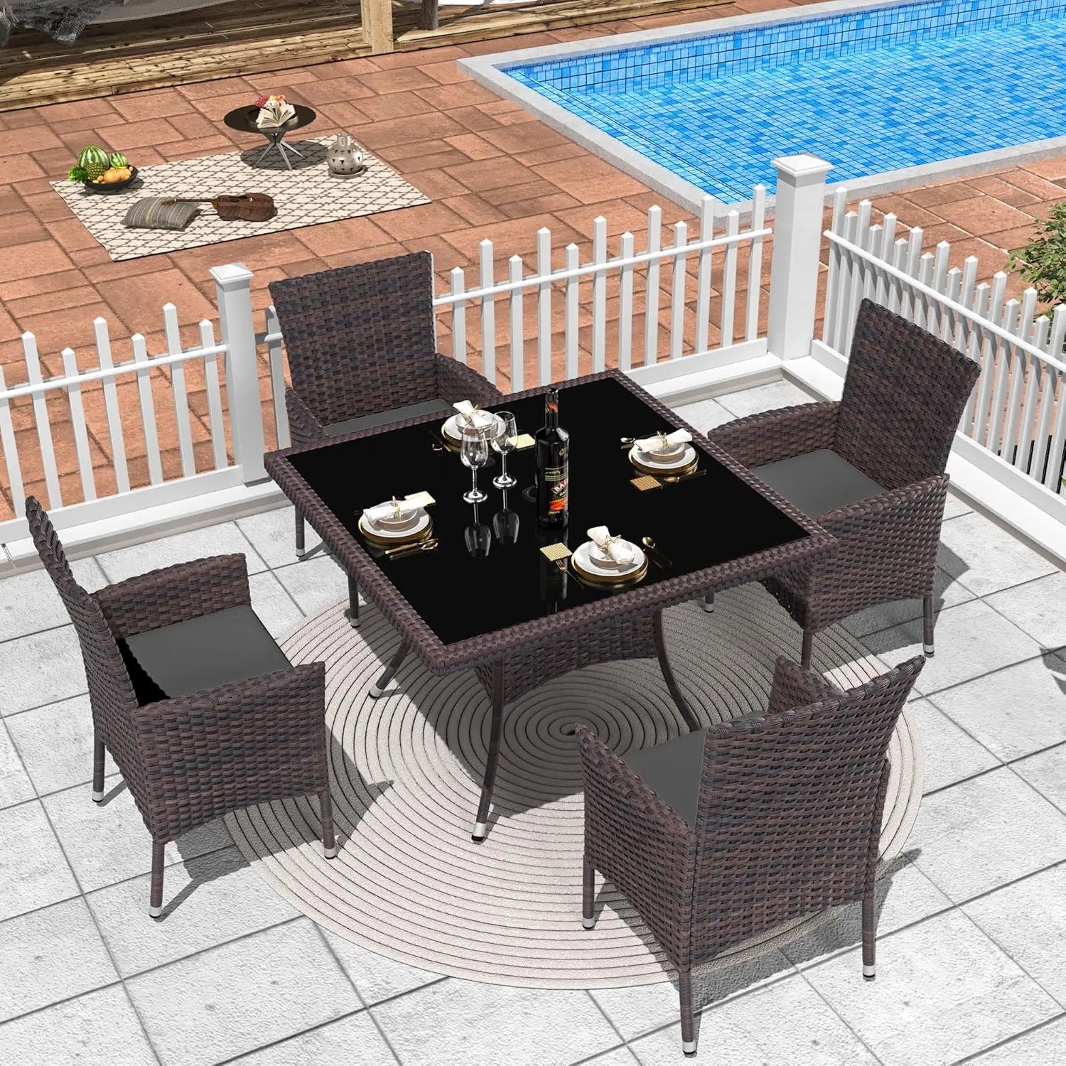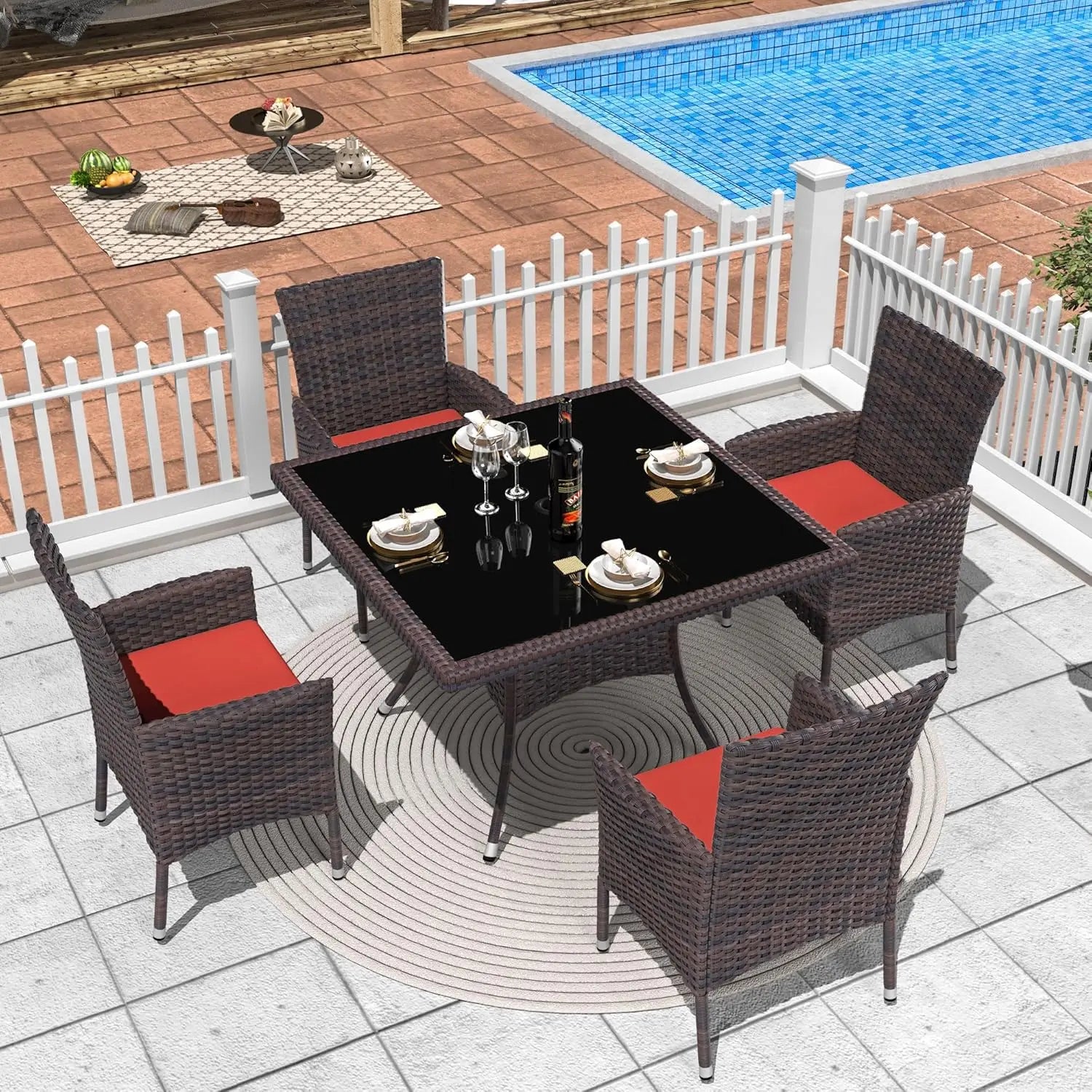 Whether you're hosting a dinner party or enjoying a casual meal outside, this 5 Piece Rattan Patio Dining Set offers both functionality and style, making it a standout choice in outdoor furniture. Enhance your patio experience with this exquisite set that effortlessly combines beauty and practicality.