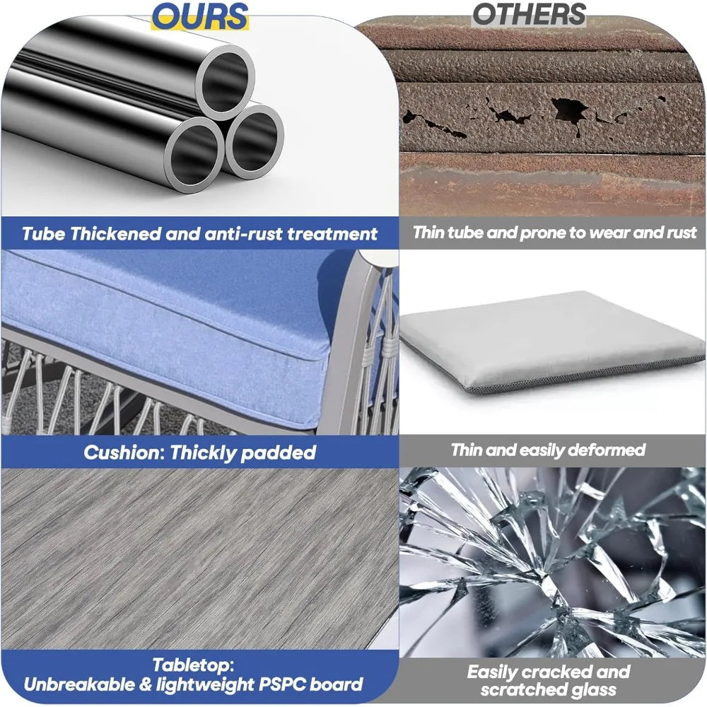 - Durable Construction: Crafted from high-quality metal, this patio set is built to withstand the elements, ensuring longevity and stability.