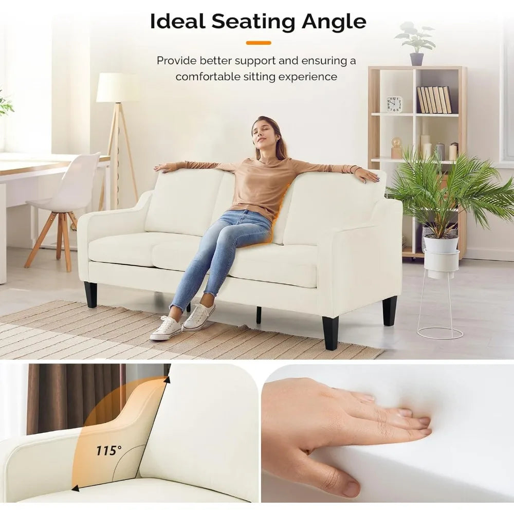 Comfy 71 Inch Mid Century Modern 3 Seater Sofa in Creamy White