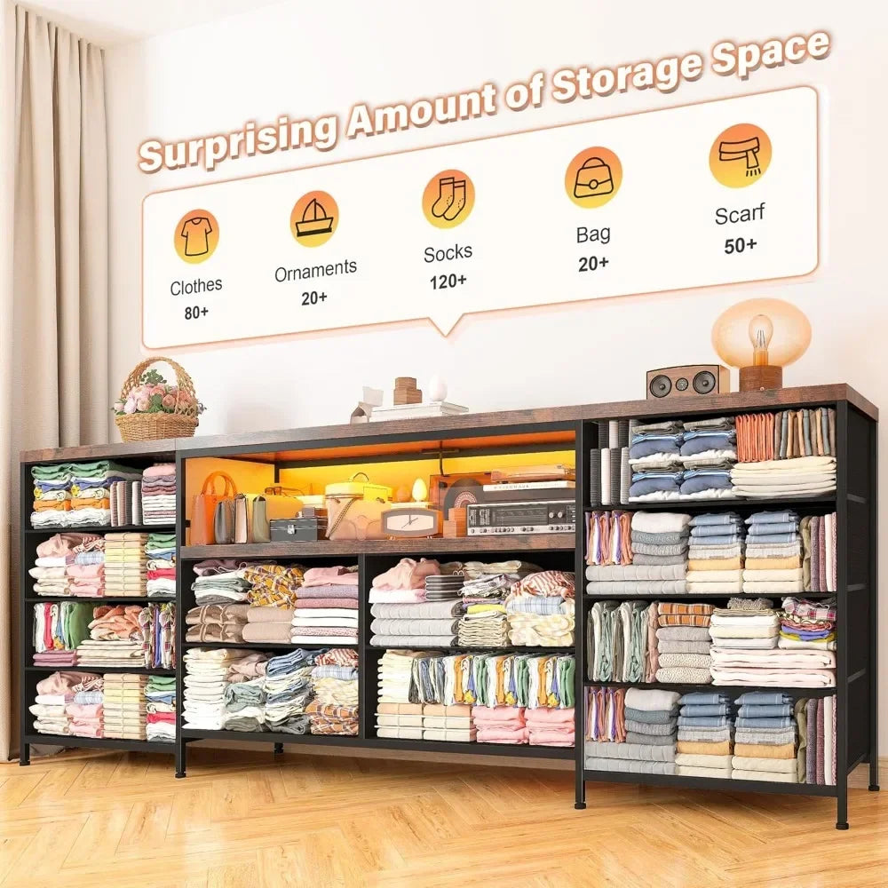 75 Inch TV Stand with LED Lights and 12 Drawer Dresser