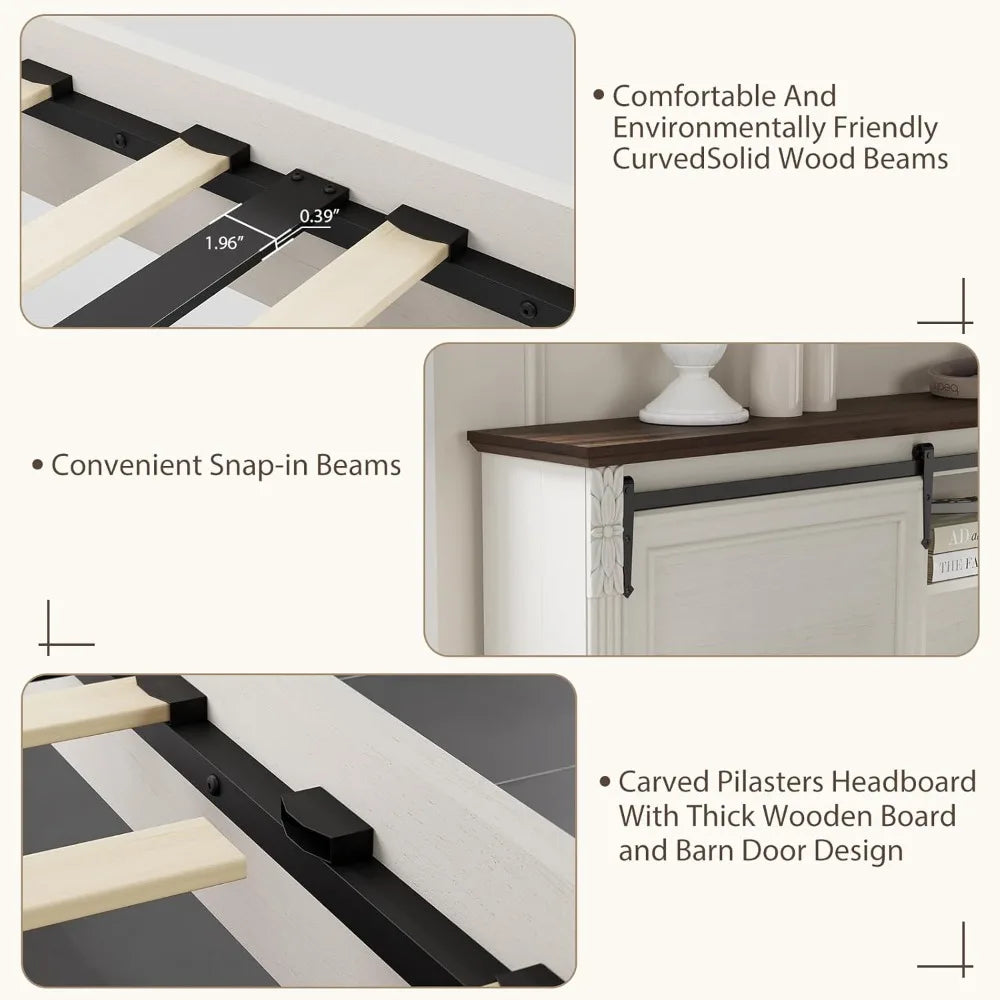 This exquisite bed frame showcases a farmhouse style that seamlessly integrates with various interior designs, making it a versatile addition to any home. Its elegant antique white finish adds a touch of sophistication, while the robust construction ensures durability and longevity.