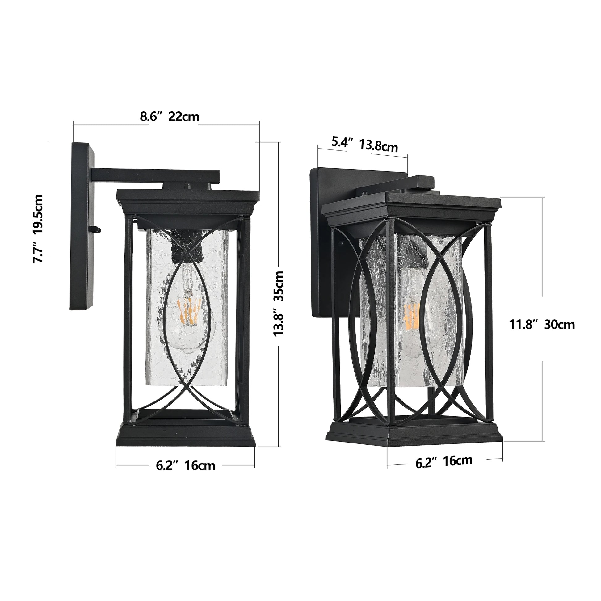 Black Outdoor Wall Lantern with Crackled Glass and E26 Base