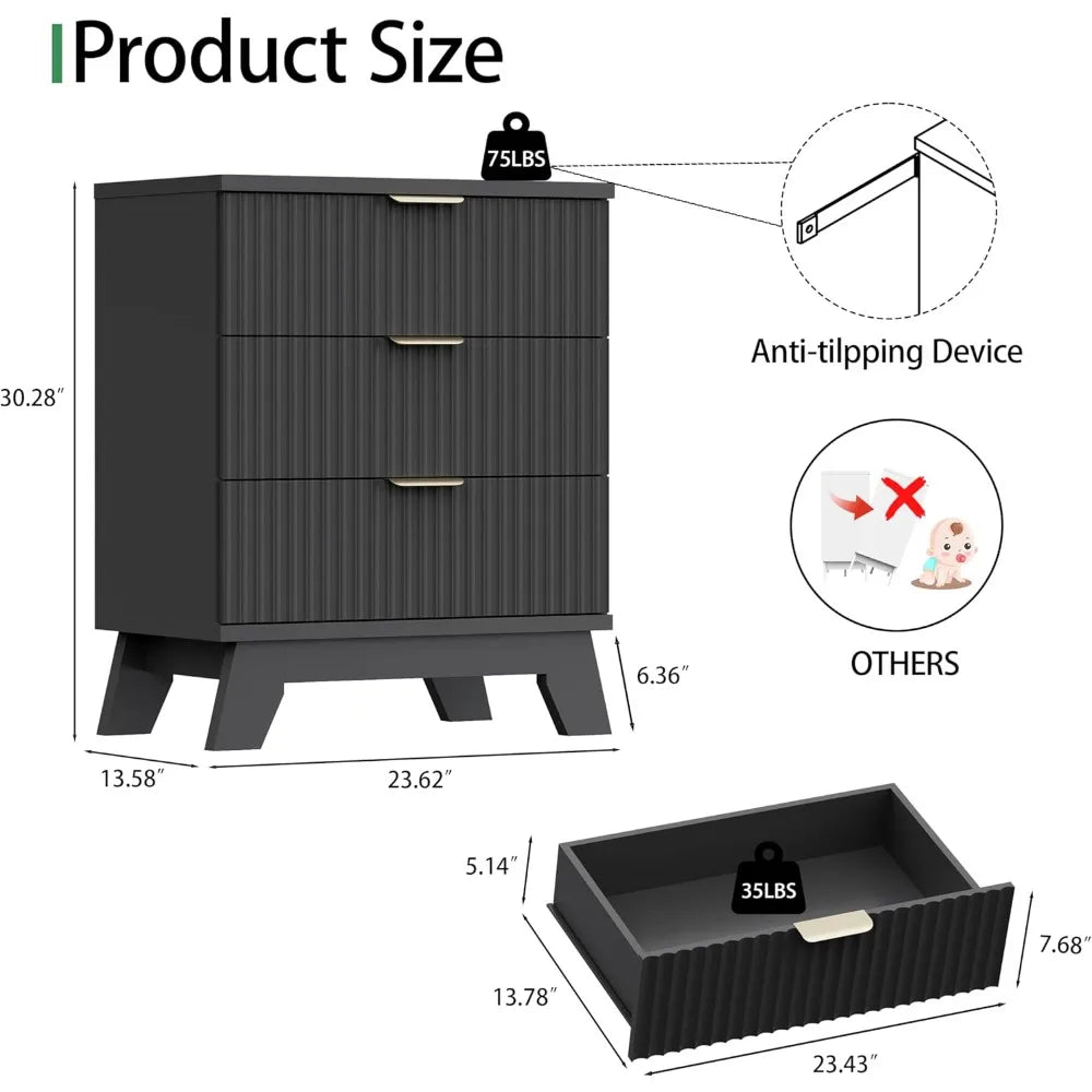 Don't miss out on the chance to enhance your bedroom aesthetics. Order the Fluted Nightstand with 3 Drawers today and enjoy the elegance and utility it brings.