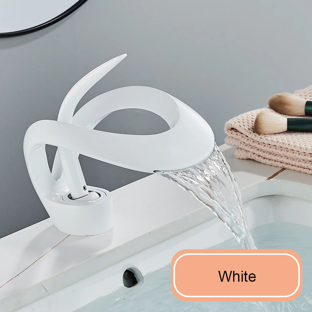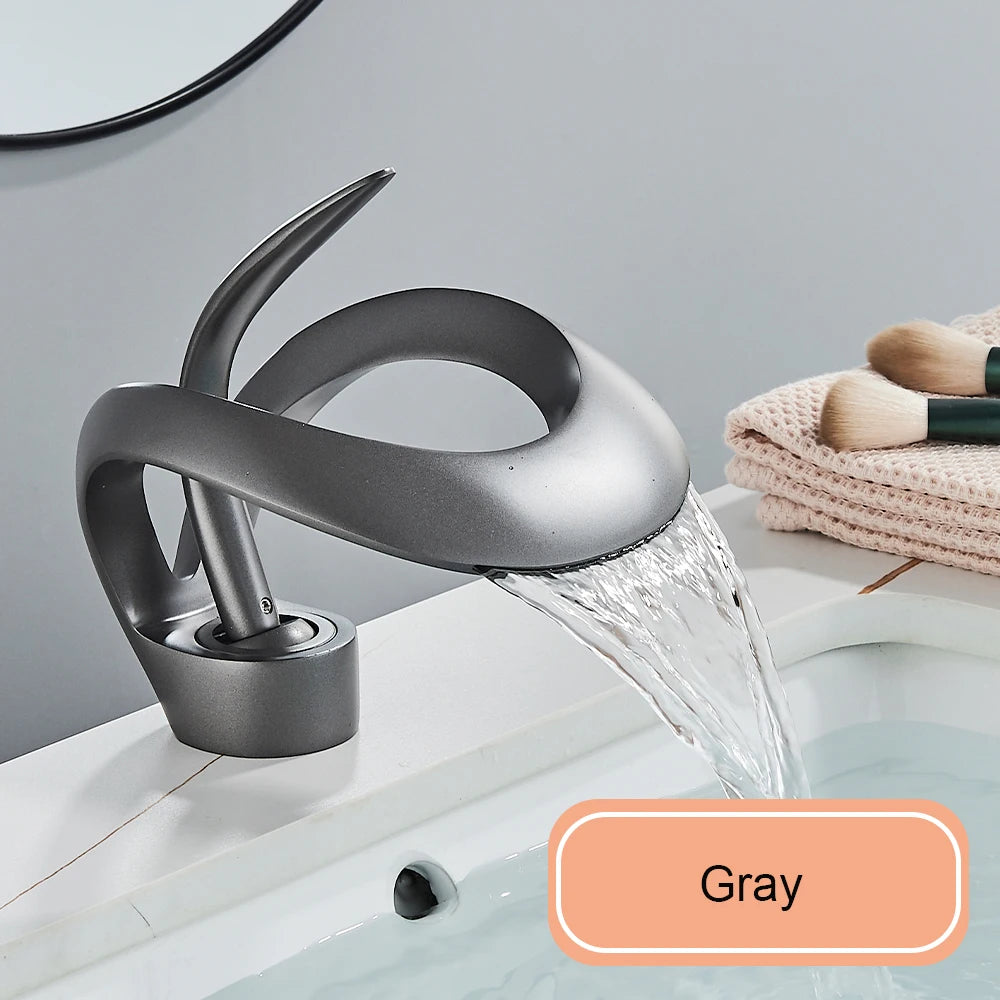 Crafted from high-quality brass, this faucet promises durability and a sleek finish that will stand the test of time. The contemporary design features a waterfall spout that creates a tranquil flow, making your bathroom feel like a luxurious spa retreat.
