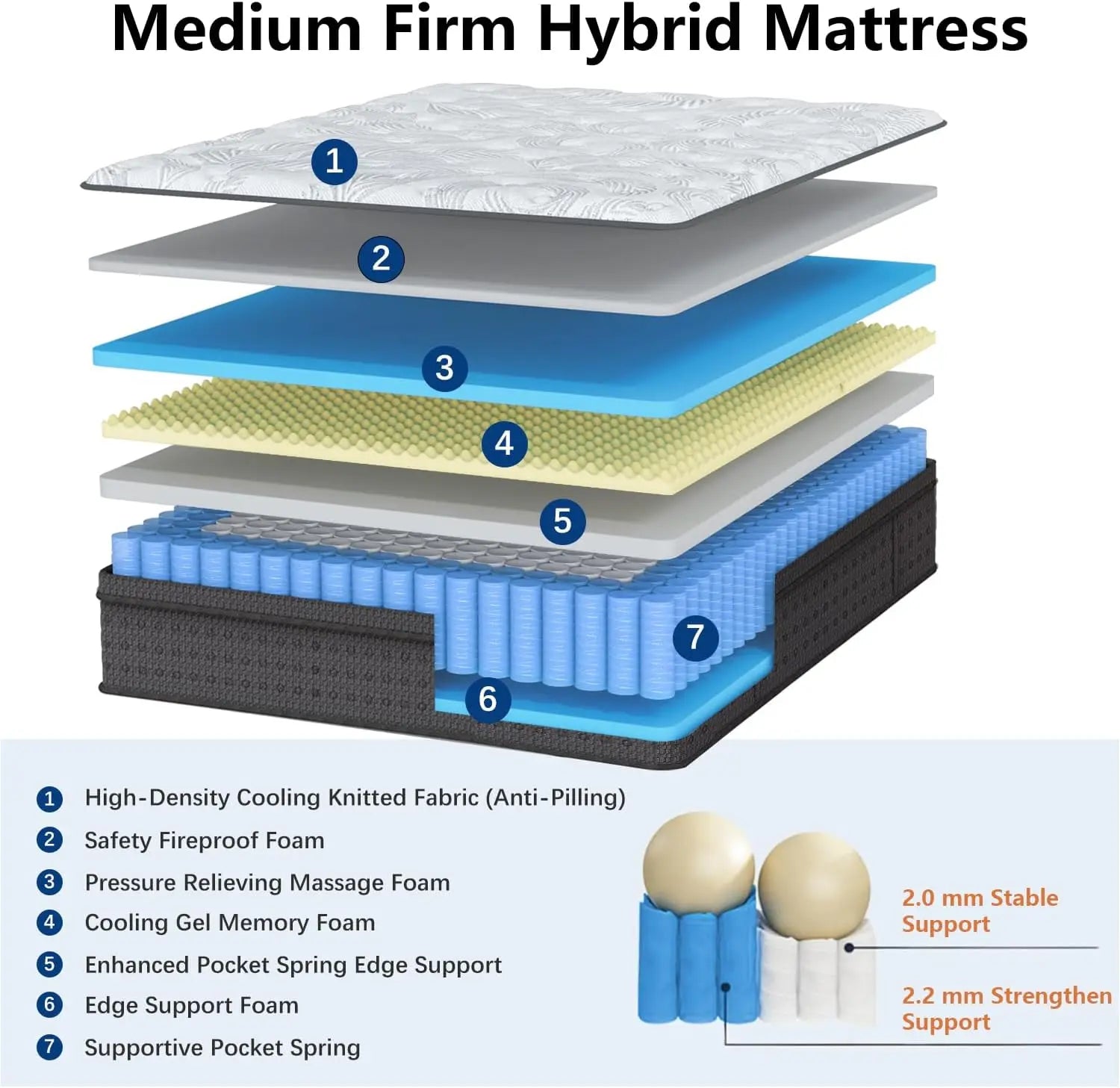 14 Inch Hybrid King Size Mattress with Gel Memory Foam