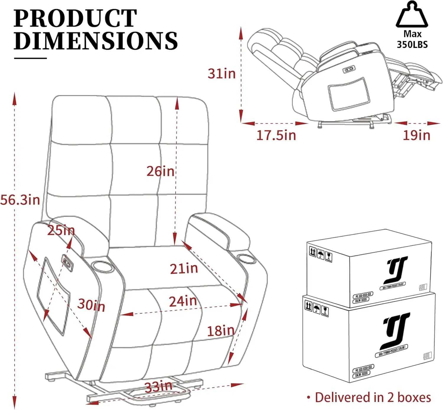 Large Power Lift Recliner Chair with Massage and Heat Features