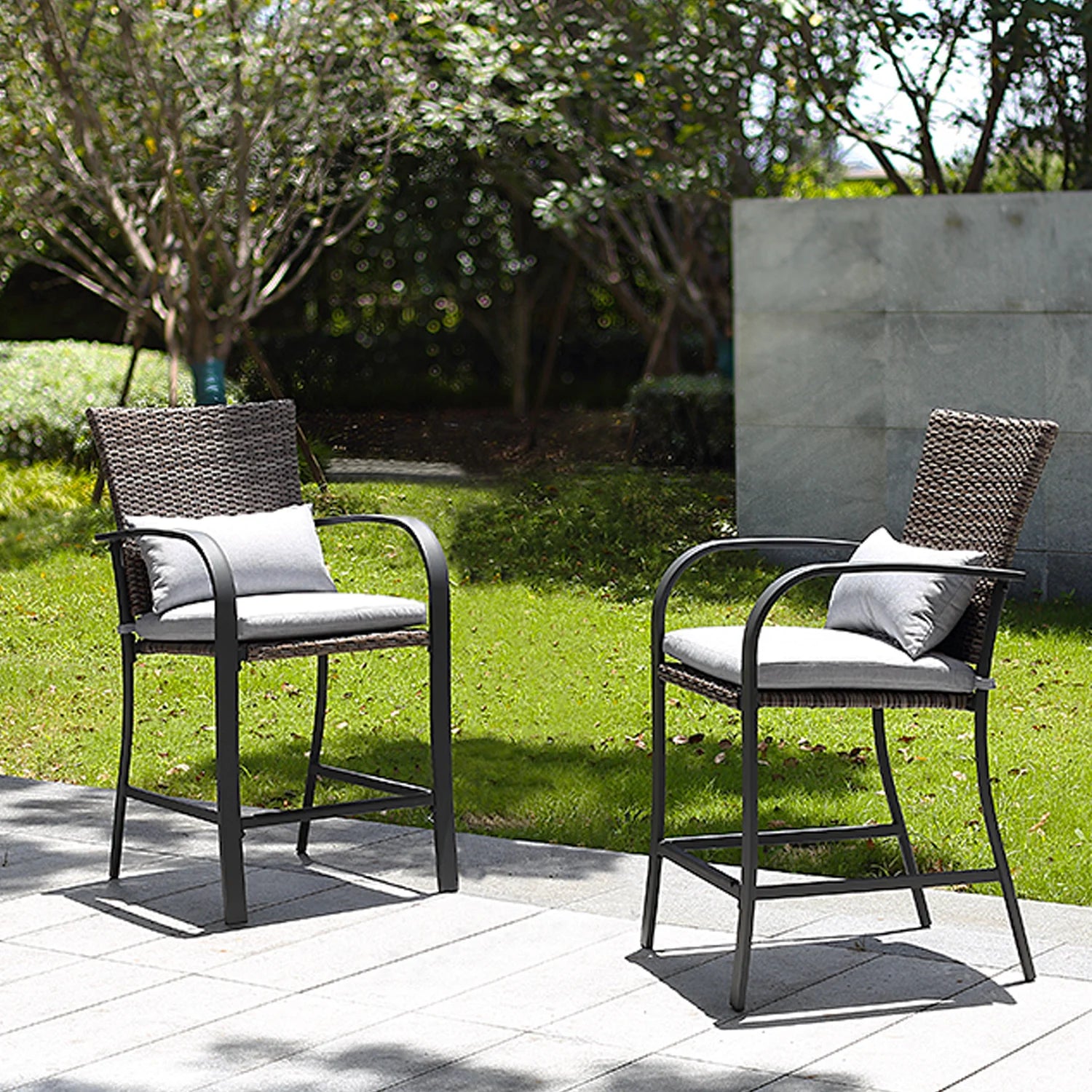 Naga Bahna 2pcs Rattan Wicker Patio Bar Chair Set with Cushions