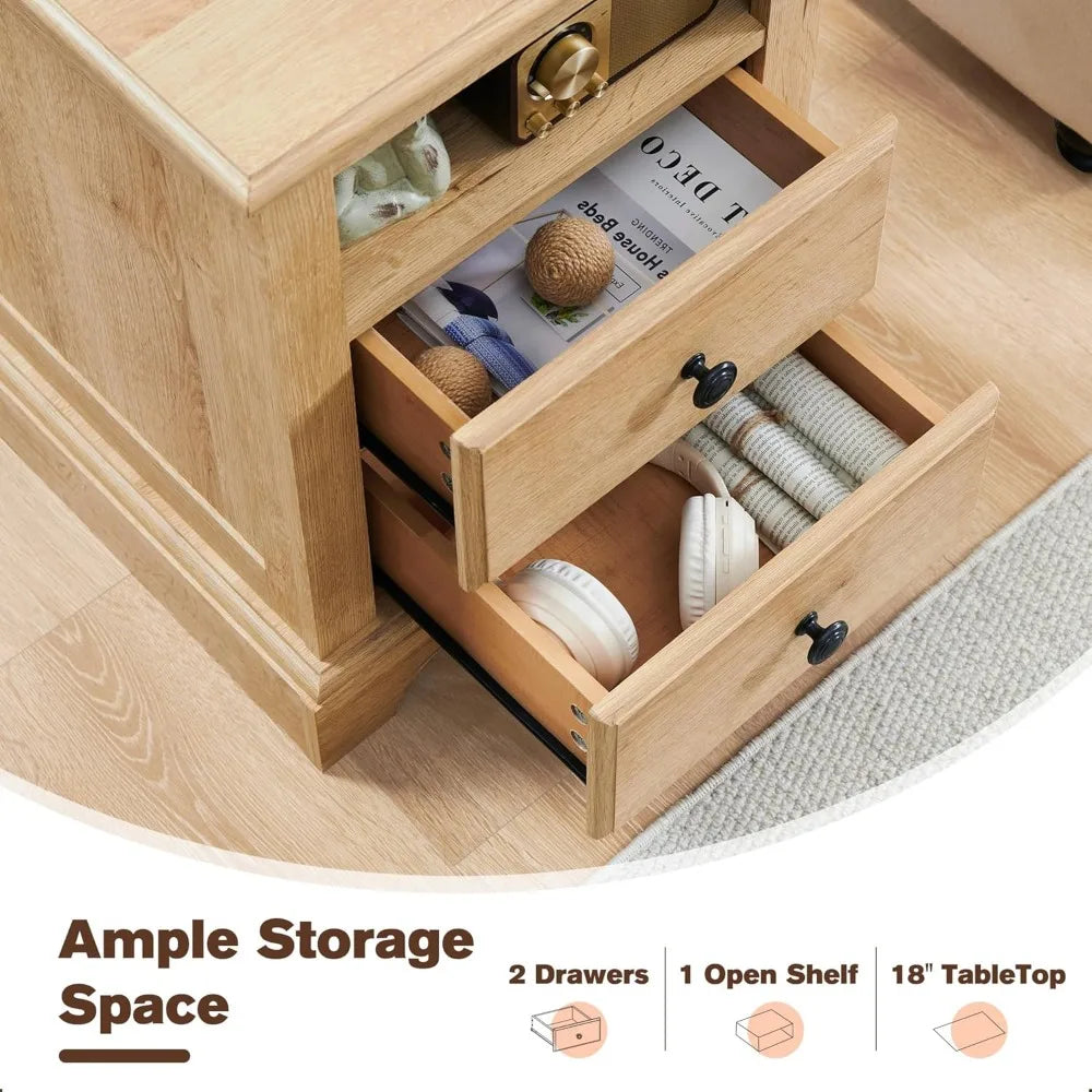 Elevate your bedroom decor with the Vintage Nightstand with Charging Station and Storage Shelf from Fabulous Home Goods. This exquisite piece marries functionality and style, making it an essential addition to any modern home. Crafted with high-quality engineered wood and finished in a Natural Oak color, this nightstand not only provides ample storage but also adds a touch of warmth and elegance to your space.