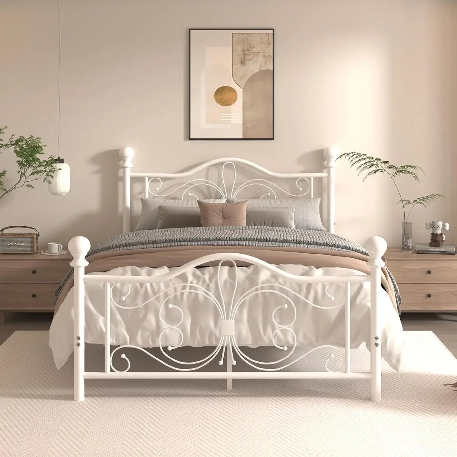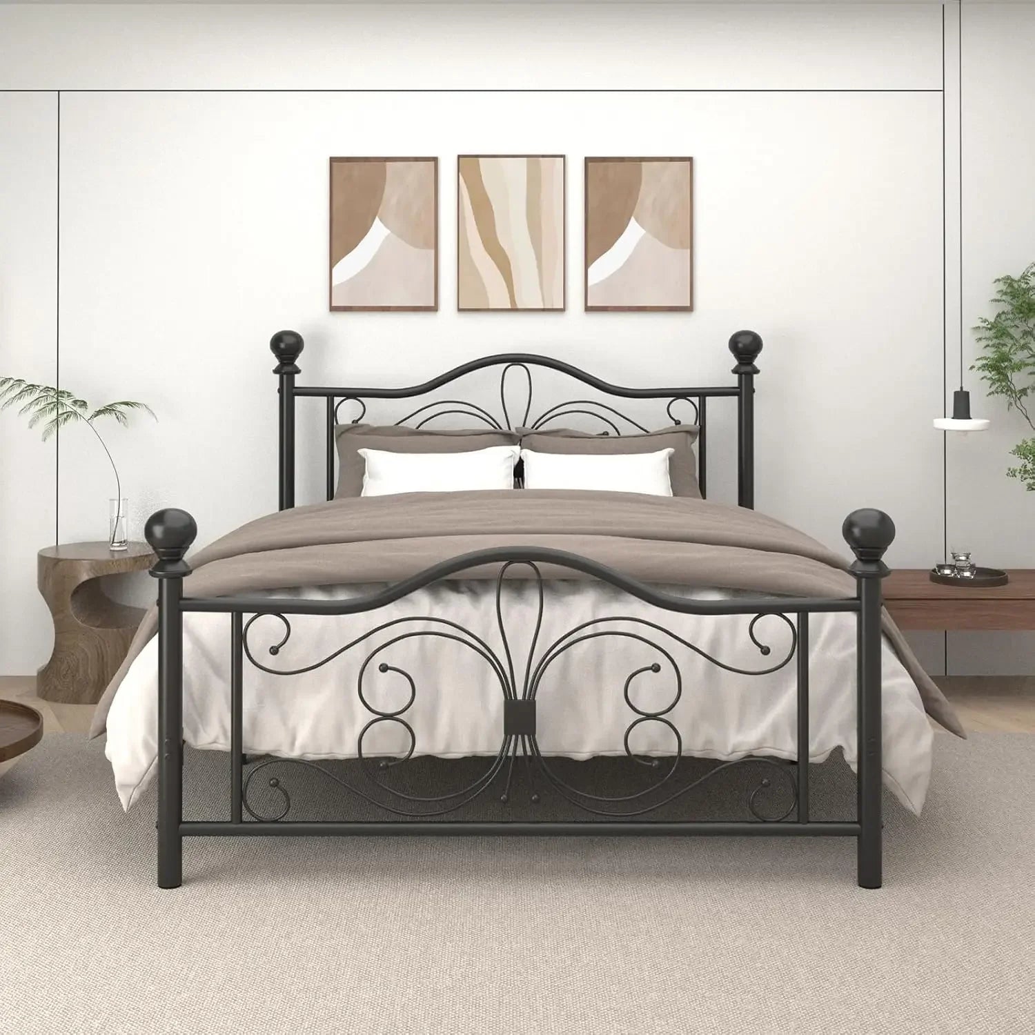 Queen Size Metal Platform Bed Frame with Butterfly Headboard