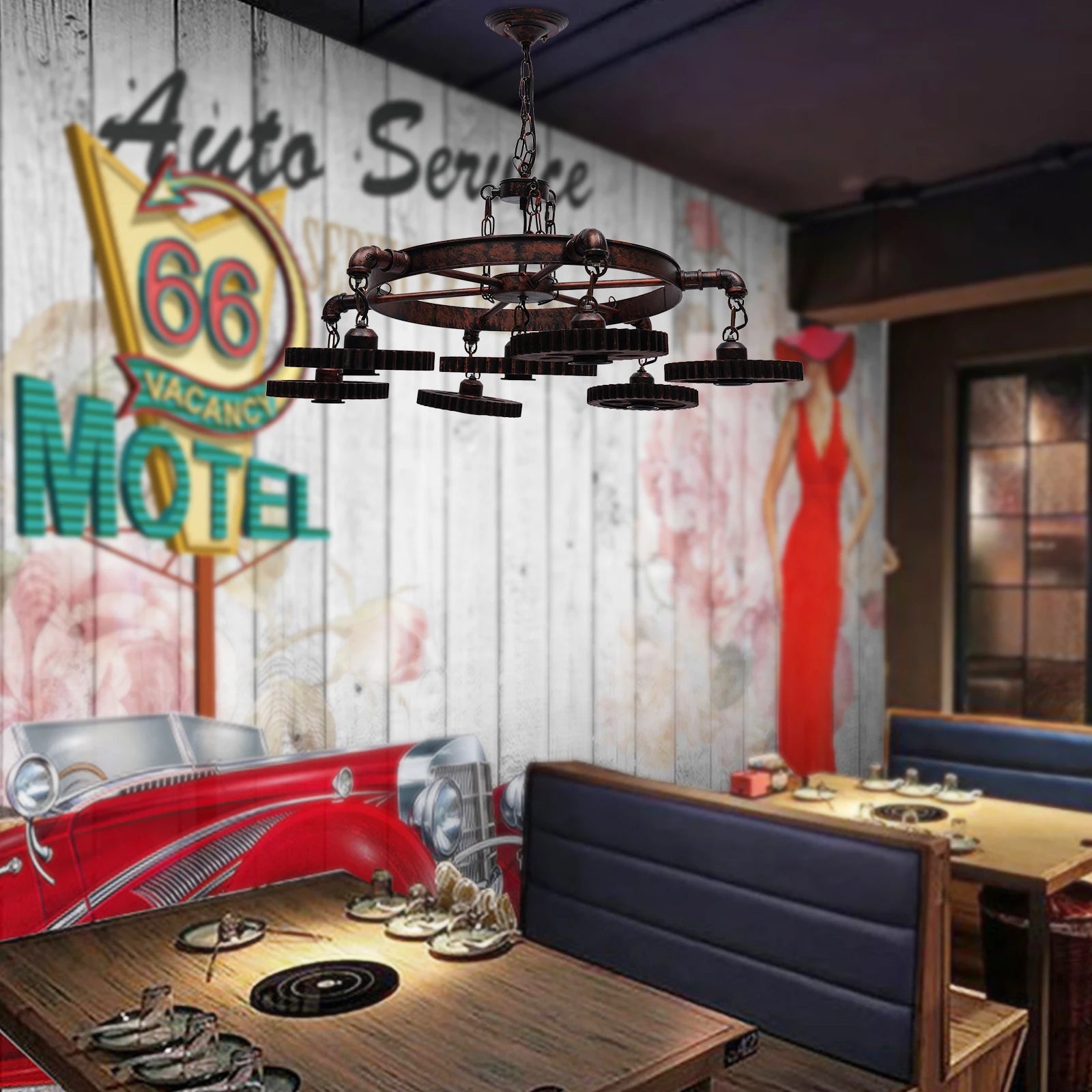 Retro Vintage Industrial Round Gear Chandelier with 7 Lights