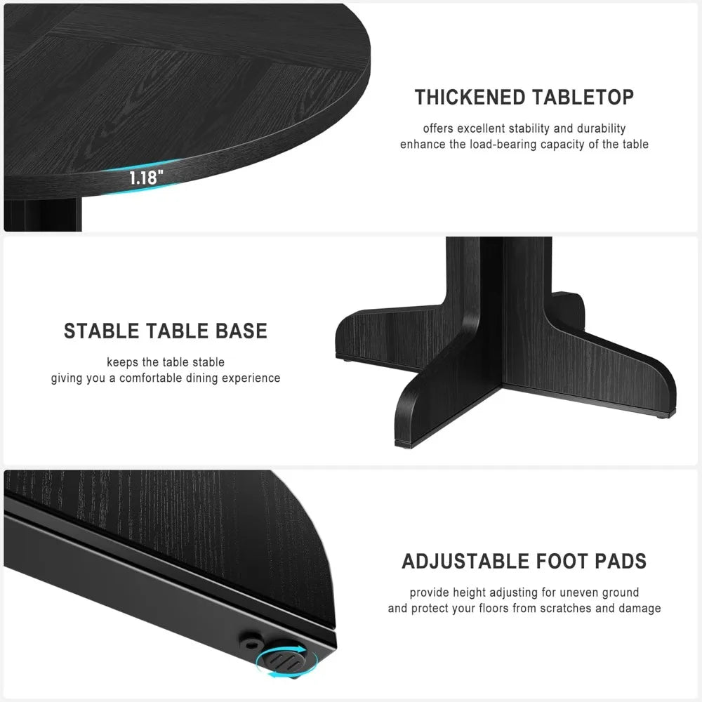 Round Dining Table for 4 with Wooden Base 47 Inch Black Circle