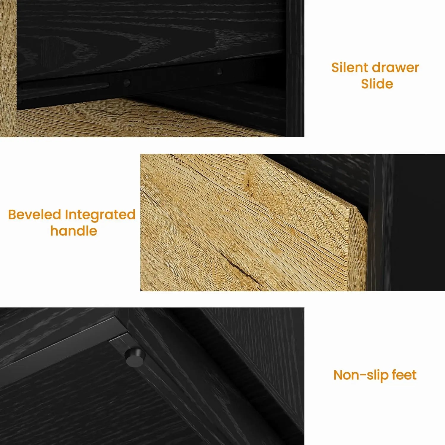 RoyaCraft Black Nightstand Set of 3 with Large Drawers