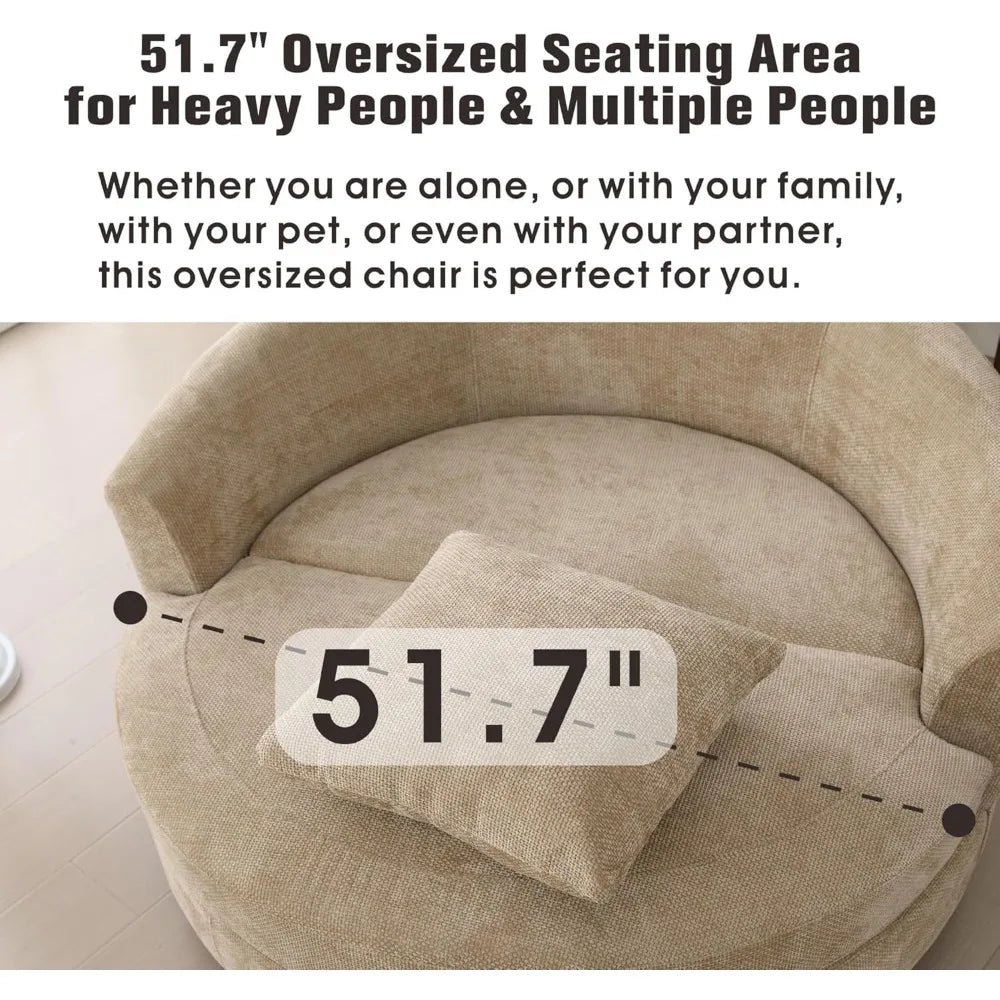 Oversized Round Barrel Chair with Ottoman for Living Room